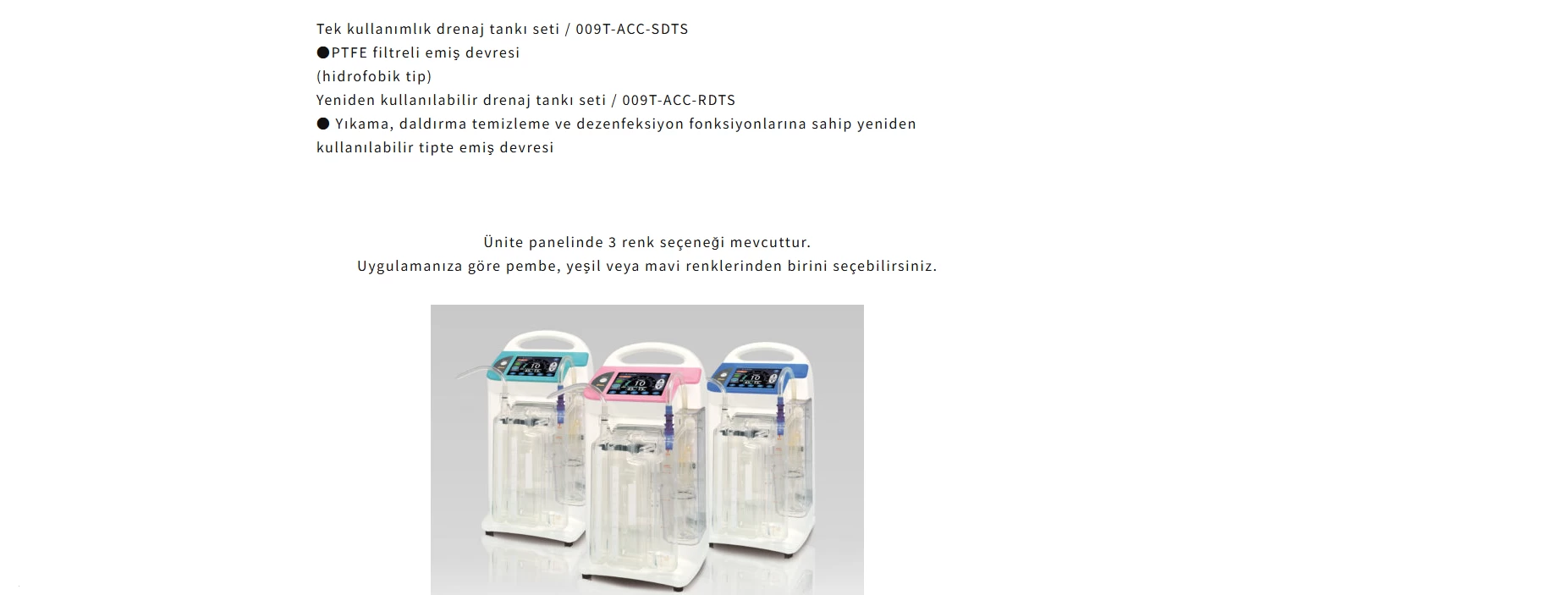 MERA SUCUUM, hastanın göğüs boşluğunda biriken kan ve salgıları ara sıra boşaltmak için kullanılan elektrikli, düşük basınçlı bir göğüs emme ünitesidir. MERA SUCUUM 009, pnömotoraks ve pnömonektomi sonrası hava kaçağı eğilimini izlemek ve yönetmek için "Trend" modunu kullanır.